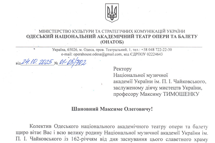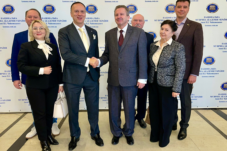 3 листопада до НМАУ ім. П. І. Чайковського завітали почесні гості – ректор Київського університету права НАН України Юрій Бошицький, проректори і члени Вченої ради університету.