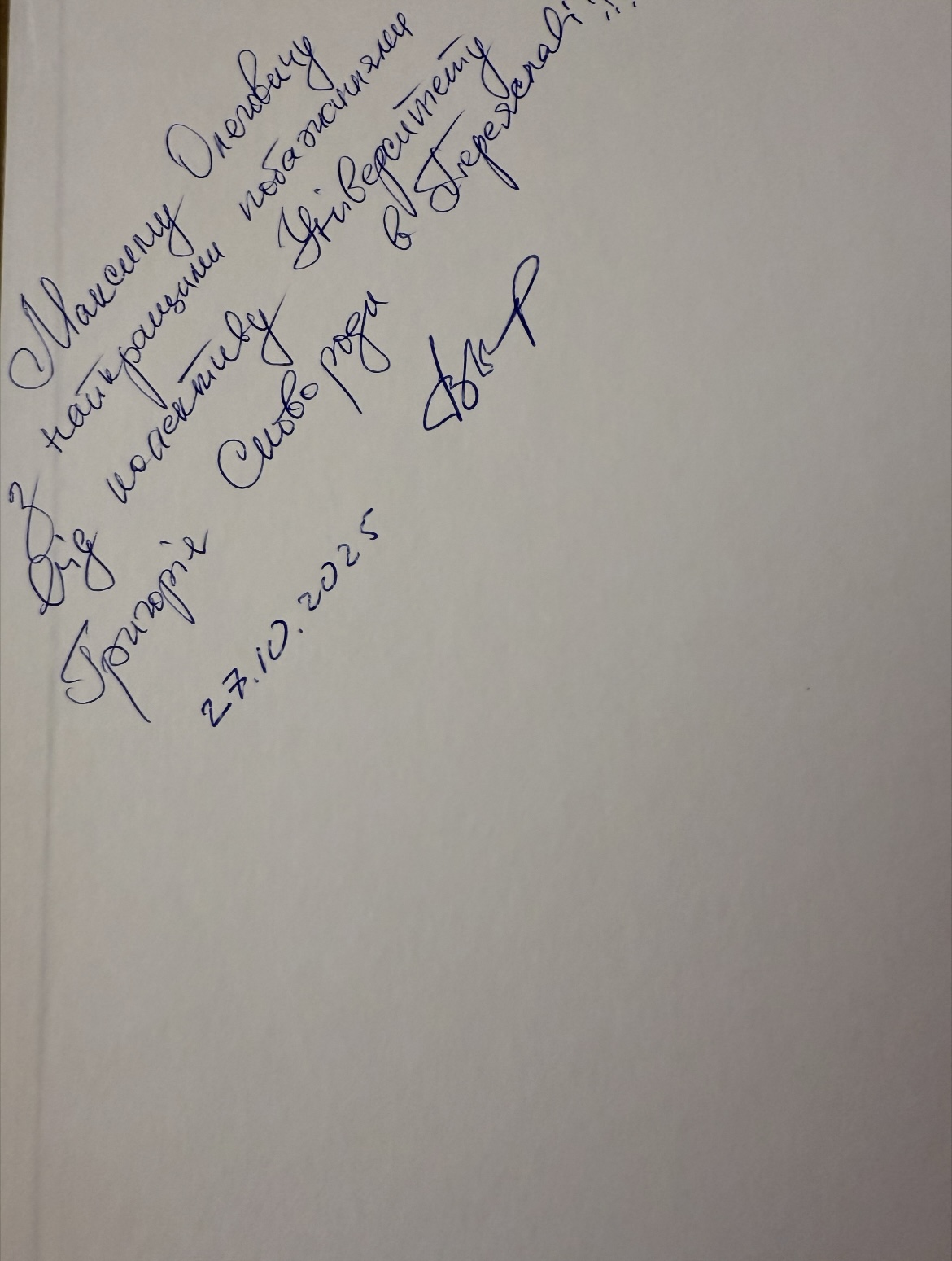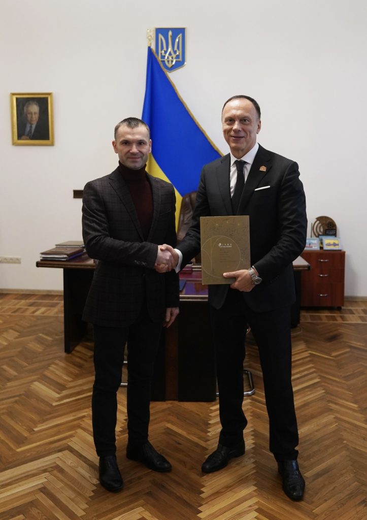 Під час зустрічі Віталій Коцур подарував очільнику Академії книгу про життя і творчість видатного українського філософа, поета та мислителя Григорія Сковороди – символ духовного зв’язку освіти, науки та культури.