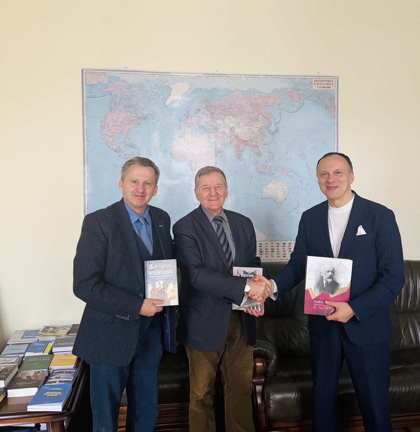 У Інституті всесвітньої історії Національної академії наук України відбулася робоча зустріч ректора Національної музичної академії України ім. П. І. Чайковського Максима Тимошенка та директора Інституту всесвітньої історії НАН України Андрія Кудряченка. У зустрічі також взяв участь ректор Київського університету права НАН України Юрій Бошицький.