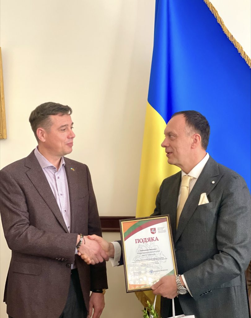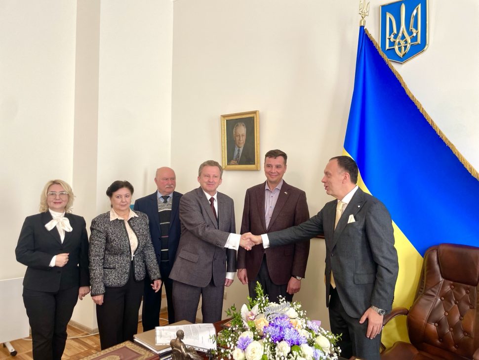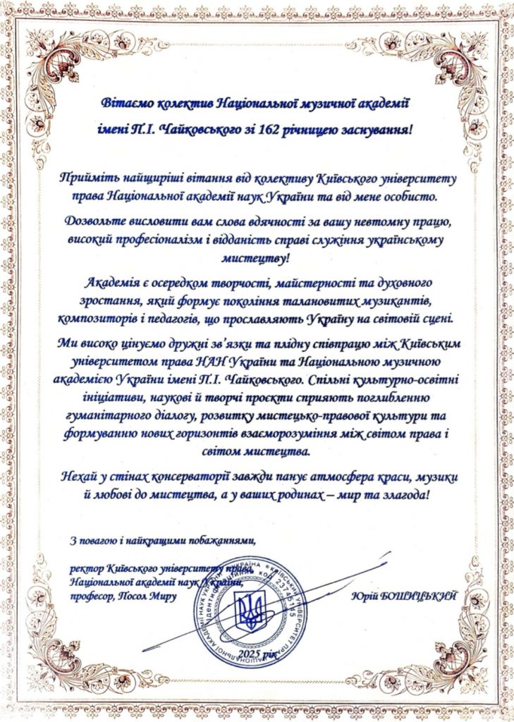 Під час зустрічі пан Юрій Бошицький від імені колективу Київського університету права НАН України вручив вітальну адресу славетному колективу Академії та подяку її ректорові – Максиму Тимошенку.