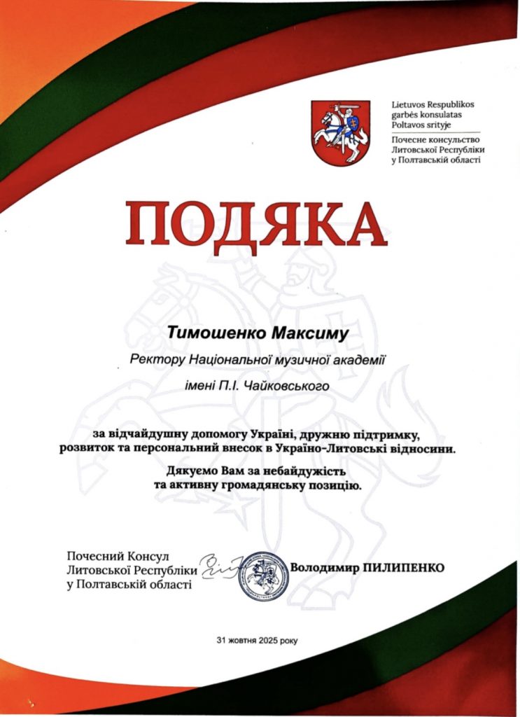 Між Київським університетом права НАН України та Національною музичною академією України імені П. І. Чайковського цього року підписано меморандум про співпрацю, і сторони вже реалізують спільні культурно-освітні ініціативи.