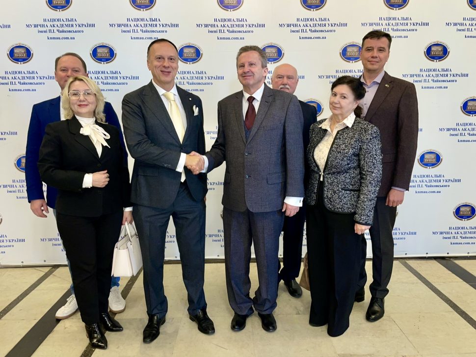 3 листопада до НМАУ ім. П. І. Чайковського завітали почесні гості – ректор Київського університету права НАН України Юрій Бошицький, проректори і члени Вченої ради університету.