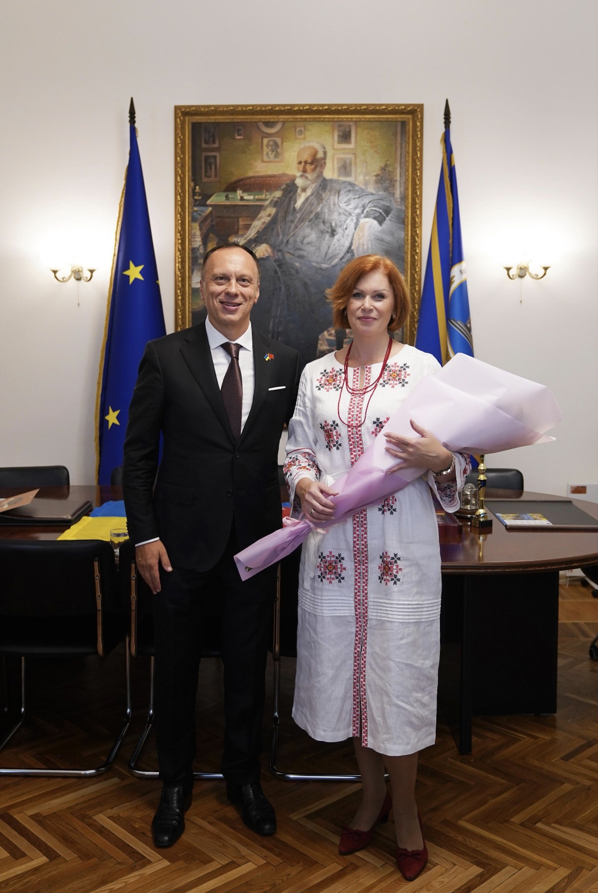 Ректор Академії Максим Тимошенко привітав з ювілеєм свого секретаря, методиста Вченої ради Вікторію Савченко, відзначивши її відданість, професіоналізм та людяність.