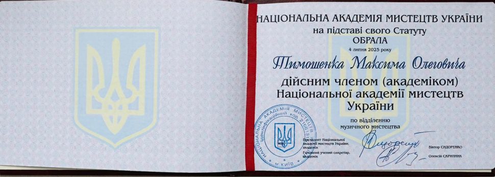 Варто зазначити, що Максим Тимошенко продовжує мистецьку династію: його батько, Олег Тимошенко, був одним із засновників Академії та першим академіком-секретарем музичного відділення НАМ України.