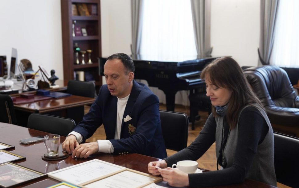 У межах розширення міжнародних культурно-освітніх зв’язків відбулася робоча зустріч Генерального директора Міжнародної Української школи Литви та Української Паризької школи Олени Внуковської з Ректором Національної музичної академії України Максимом Тимошенком.
