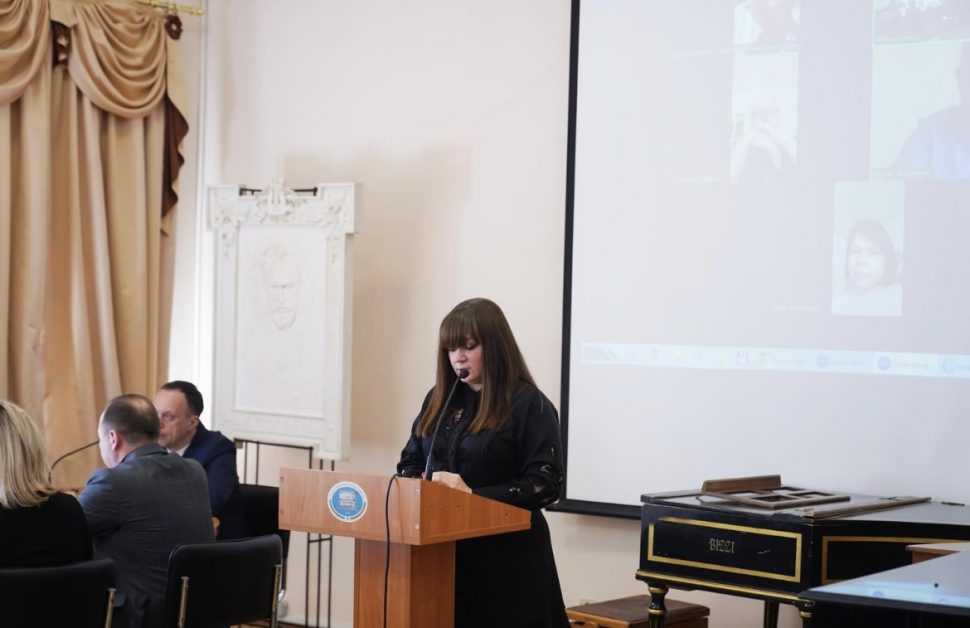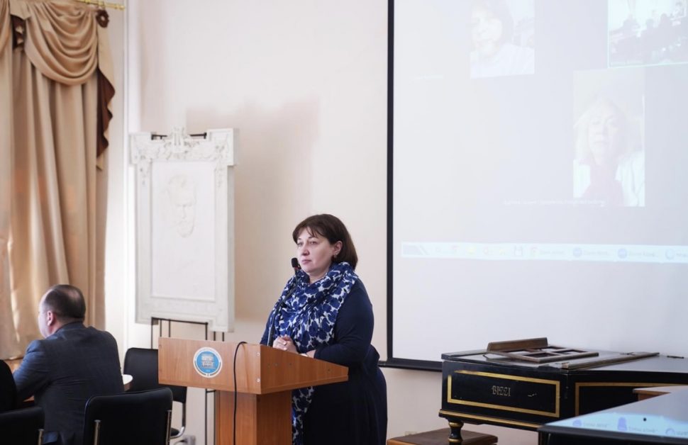 Про питання наукової діяльності Академії поінформувала проректор з наукової роботи Адріана Ярославівна Скорик, окресливши основні результати та перспективи розвитку наукового напряму діяльності НМАУ.